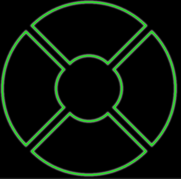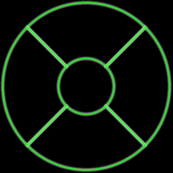 例えば4分割のメニューを作るとして、「87度+隙間3度で作ろう」とやると以下のようなものが出来上がって、メニューUIとしてはちょっと違うなという感じになる。